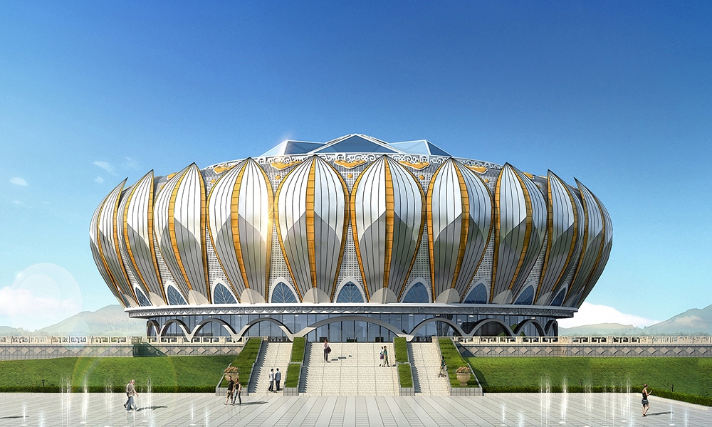 達(dá)茂聯(lián)合旗演藝中心占地面積7090平方米,總建筑面積11595平方米(其中,地下一層建筑面積3135平方米;地上一層建筑面積2543平方米;地上二層建筑面積2378平方米;地上三層建筑面積2106平方米;地上四層建筑面積2106平方米;地上四層建筑面積1433平方米),共五層(包括地下一層),鋼筋混凝土框架結(jié)構(gòu)。功能分區(qū)主要由演藝廳、電影廳、放映機(jī)房、排練廳、化妝師等區(qū)域。建筑外立面采用蓮花瓣?duì)?,以灰色為主,黃色相間的花崗巖。該項(xiàng)目舞臺(tái)設(shè)備(舞臺(tái)機(jī)械、燈光音響、座椅)由我公司設(shè)計(jì)、安裝、調(diào)試,并竣工驗(yàn)收。