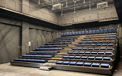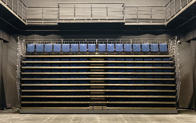 黑匣子劇場作為藝術(shù)院校開展實(shí)驗(yàn)性戲劇、小型演出及教學(xué)實(shí)踐的核心場所,其設(shè)備配置直接影響創(chuàng)作與教學(xué)效果。針對(duì)劇場 “靈活可變” 的功能定位,校方在黑匣子劇場里定制安裝可伸縮活動(dòng)看臺(tái)。該看臺(tái)采用輕量化合金材質(zhì),具備快速展開與收納功能,展開后可容納 142 名觀眾,滿足小型演出、會(huì)議等場景需求;收納后則釋放場館中央空間,不影響日常教學(xué)與排練使用。同時(shí),看臺(tái)設(shè)計(jì)符合人體工程學(xué),配備防滑踏板與安全護(hù)欄,兼顧舒適性與安全性。